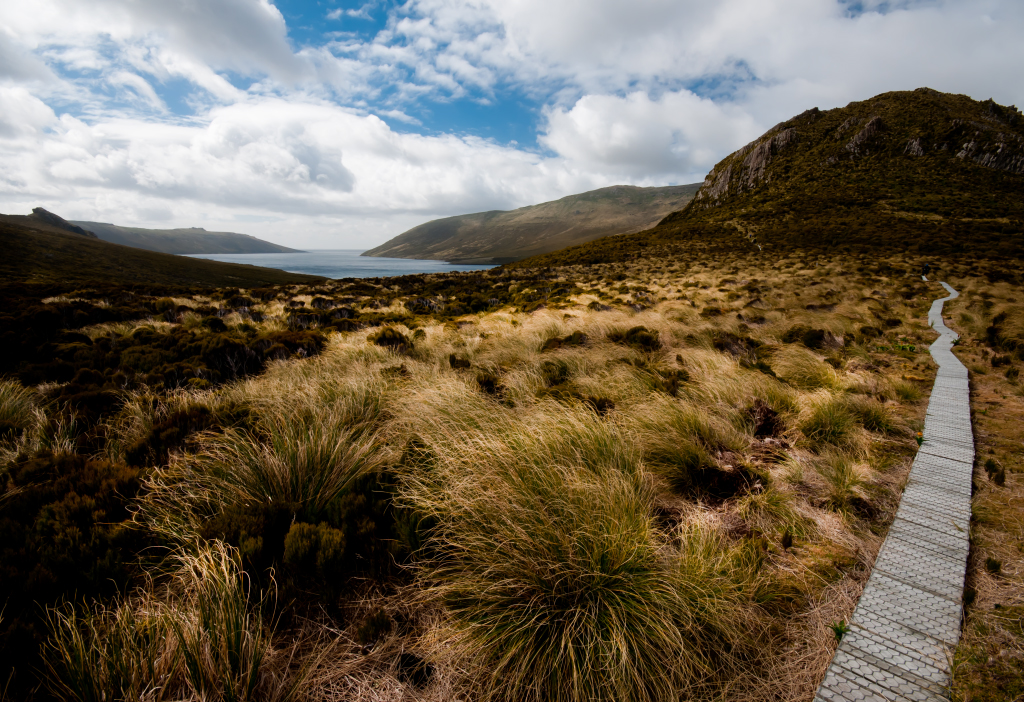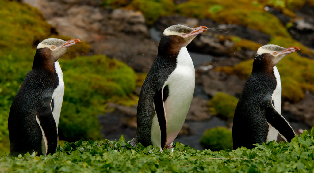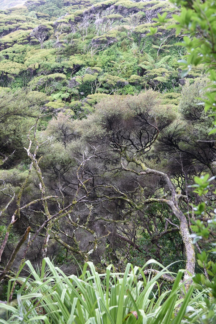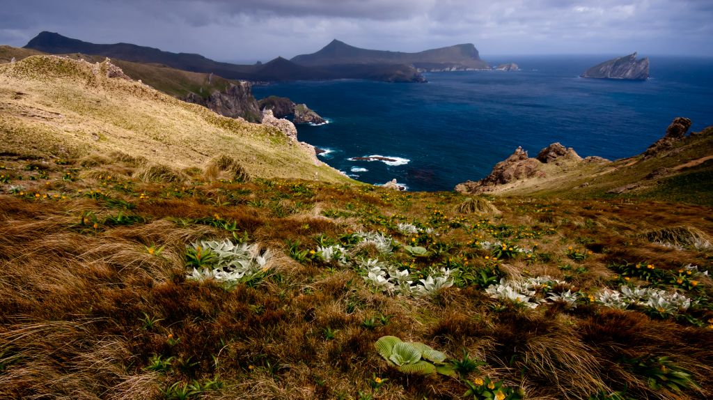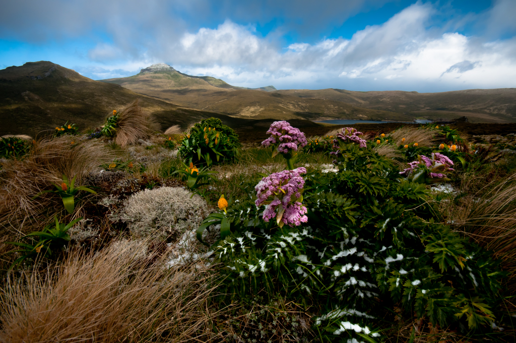 Gibt es nicht. Das eigentlich Aufregende sind die riesigen Unterschiede zwischen den Inseln und der Gradient in Richtung Antarktika. Es ist, als würde man einen Berg ersteigen. Die Snares und Auckland Islands liegen unterhalb der Baumgrenze und beherbergen die südlichsten Wälder der Welt. Auf den sub-alpinen Campbell Islands finden sich nur noch ‚Riesenkräuter‘ („mega herbs„), „tussock“ und ein paar isolierte Bäume. Die australische Macquarie Island ist alpin. Dort wachsen vor allem Gräser, Moose und Flechten. Und die Bounty Islands sind praktisch nackt, weil sie den Elementen so ausgesetzt sind, dass sich dort keine Erde halten kann.