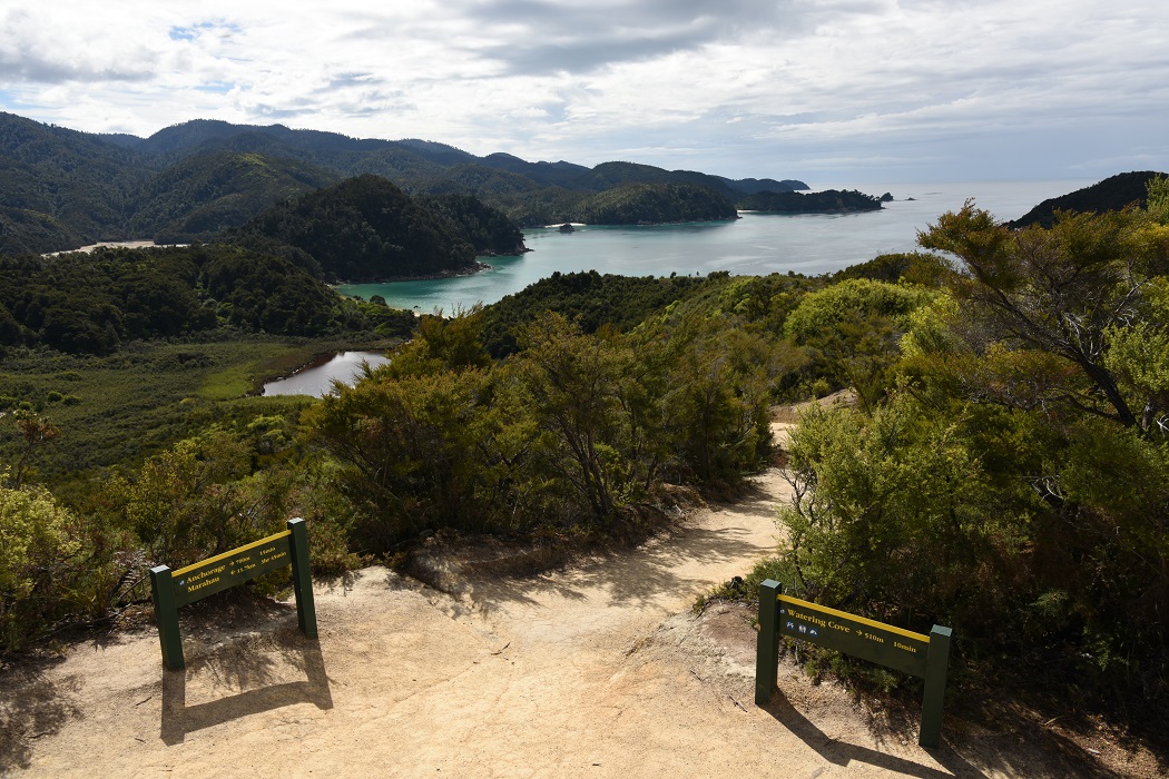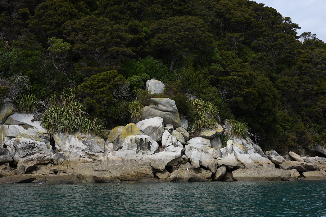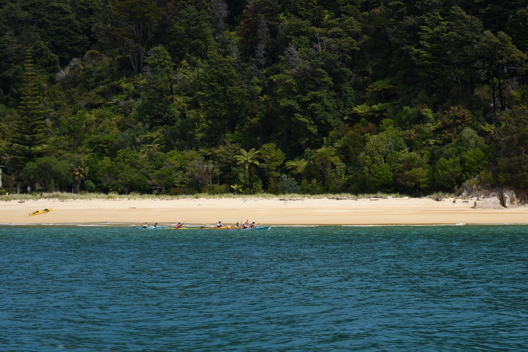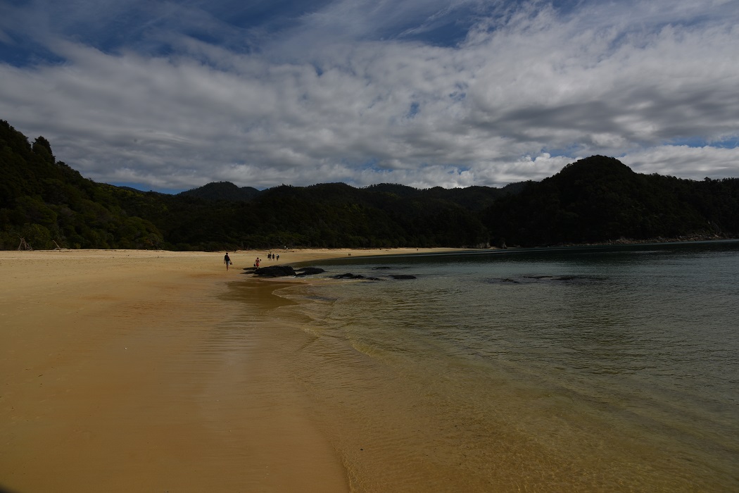 Abel Tasman National Park ist, wie die neuseeländische Naturschutzbehörde DOC lakonisch feststellt, sowohl der kleinste als auch der am meisten besuchte Nationalpark Neuseelands. Das hat Folgen. Wir waren zu Saisonende dort und fanden – ohne Spaß – eine größere Dichte an Deutschen vor als in jeder deutschen Fußgängerzone, wenigstens in Westdeutschland. Nur die „sand flies“ und die Wespen waren noch zahlreicher. Übrigens habe ich noch nie soviele Wespen an einem Ort gesehen und frage mich, warum DOC das so laufen lässt (wir werden dem nachgehen und ggf. berichten). Zuweilen war deren irritierendes Summen, Nein, nicht ohrenbetäubend, aber ausreichend, um die typisch neuseeländische Stille zu verdrängen 🙁 … Und wenn die Wespen Pause machten, dann wurde die Geräuschkulisse von der nicht enden wollenden Prozession von „water taxis“, also kleinen bis mittleren Motorbooten, die regelmäßig an den vielen Anlegestellen entlang der Küste Halt machen, um Besucher ein- und auszuladen geliefert.