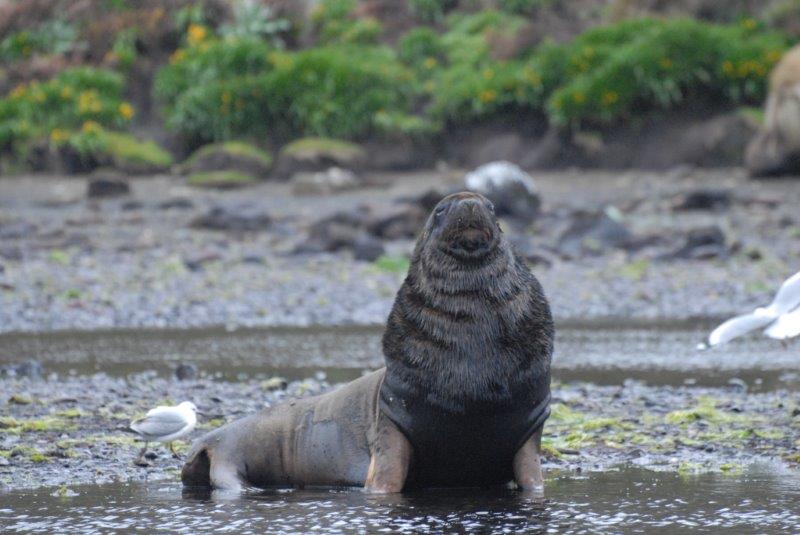 Auf Campbell Island führte ich eine Besuchergruppe durch mannshohen Tussock, der einem nicht erlaubte irgendwas zu sehen als das Gras vor der Nase. Dann fühlte sich plötzlich der Boden so komisch an, und noch ein Schritt, und irgendwas stimmte nicht. Ich war versehentlich auf den Rücken eines Seelöwen gestiegen! Der rannte Gott sei dank in der andere Richtung, und ich in die entgegengesetzte.