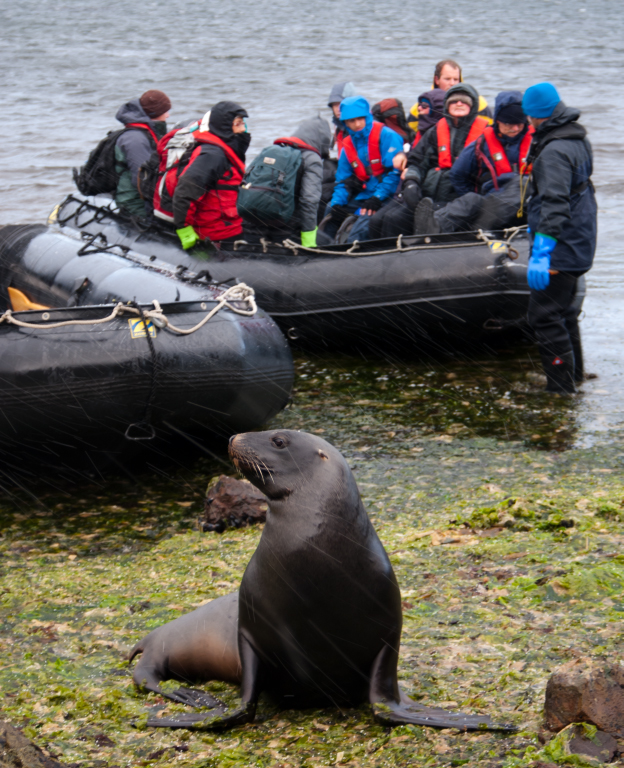 Wir überwachen außerdem wer ein- und ausgeht. Im Moment bringen sechs lizenzierte Kreuzfahrtunternehmen Besucher auf die Inseln, ungefähr 1000 pro Jahr, Tendenz gleichbleibend. Fünf der sechs machen nur Zwischenstopps auf unseren Inseln auf ihrem Weg nach Antarktika und kommen zweimal im Jahr, meistens im Südsommer, also Januar und Februar. Ein Veranstalter fährt die Inseln etwa sechs Mal pro Jahr an, und nur diese, ohne Weiterfahrt in die Antarktis.