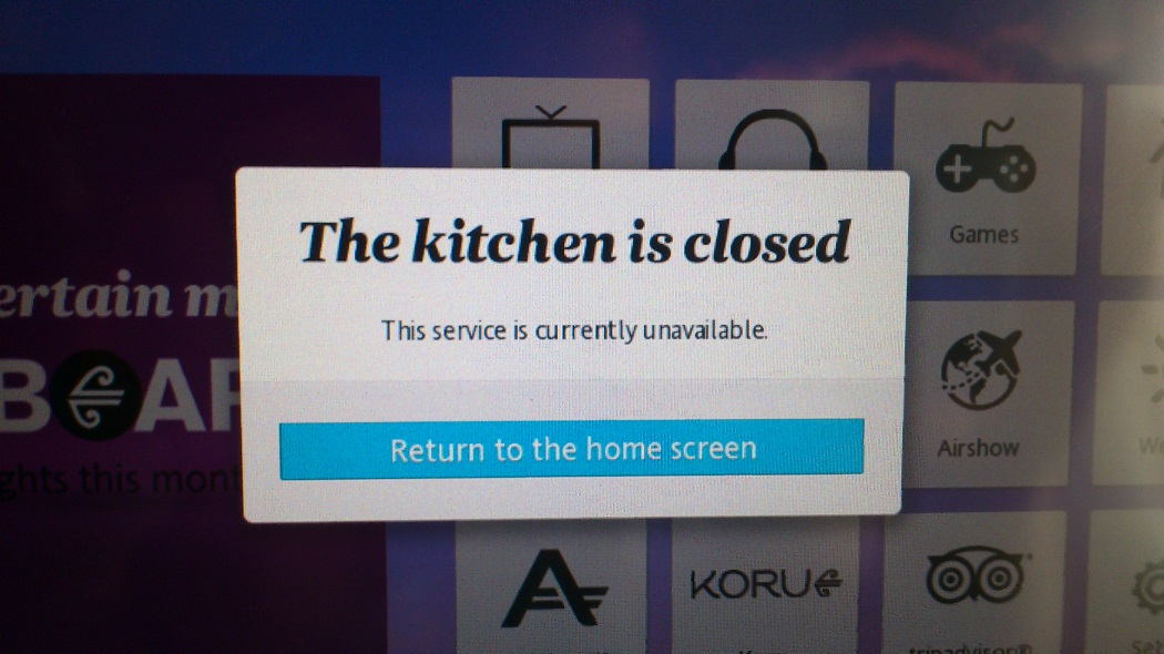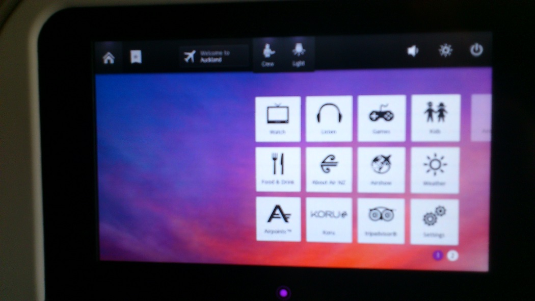 „Bugs“, Fehler in der Software habe ich leider trotzdem feststellen müssen, wenn auch in den weniger populären Apps. Man kann doch ordentlich Testen, oder? Die Anmeldung beim Airpoints Programm von Air NZ, zum Beispiel, die ich probeweise eingetippt hatte, hatte Fehler und scheint trotz aller Mühen nicht funktioniert zu haben, da nun auch viele Woche später nichts von Air NZ zu hören ist. Die Bildschirmansage „The kitchen is closed“ stimmte auch nicht, da zu der Zeit gerade das Essen verteilt wurde. Wenn sowas nicht funktioniert, sollte man es einfach weglassen.