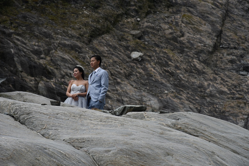 Nun, vielleicht ist die deutsche Dominanz am Franz Josef bald auch Geschichte. Ein chinesisches Fotografen- und Modellteam war gerade vor Ort, um den Gletscher als Ziel für Hochzeitsreisende zu vermarkten. Auch das haben wir in unserer kleinen Bildgeschichte dokumentiert. Viel Spaß!